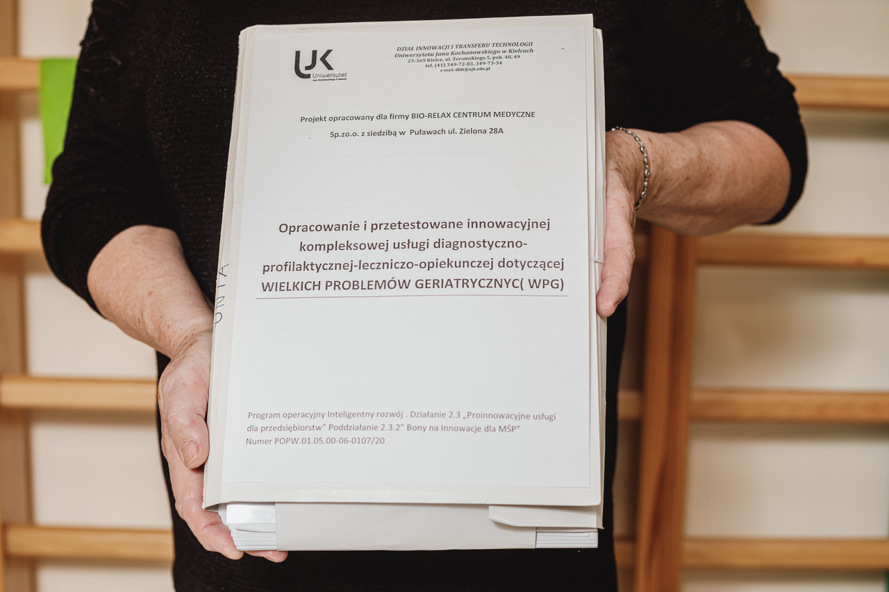 - Nazwa projektu: Opracowanie i przetestowanie innowacyjnej kompleksowej usługi diagnostyczno-profilaktyczno-leczniczo-opiekuńczej dotyczącej Wielkich Problemów Geriatrycznych (WPG)