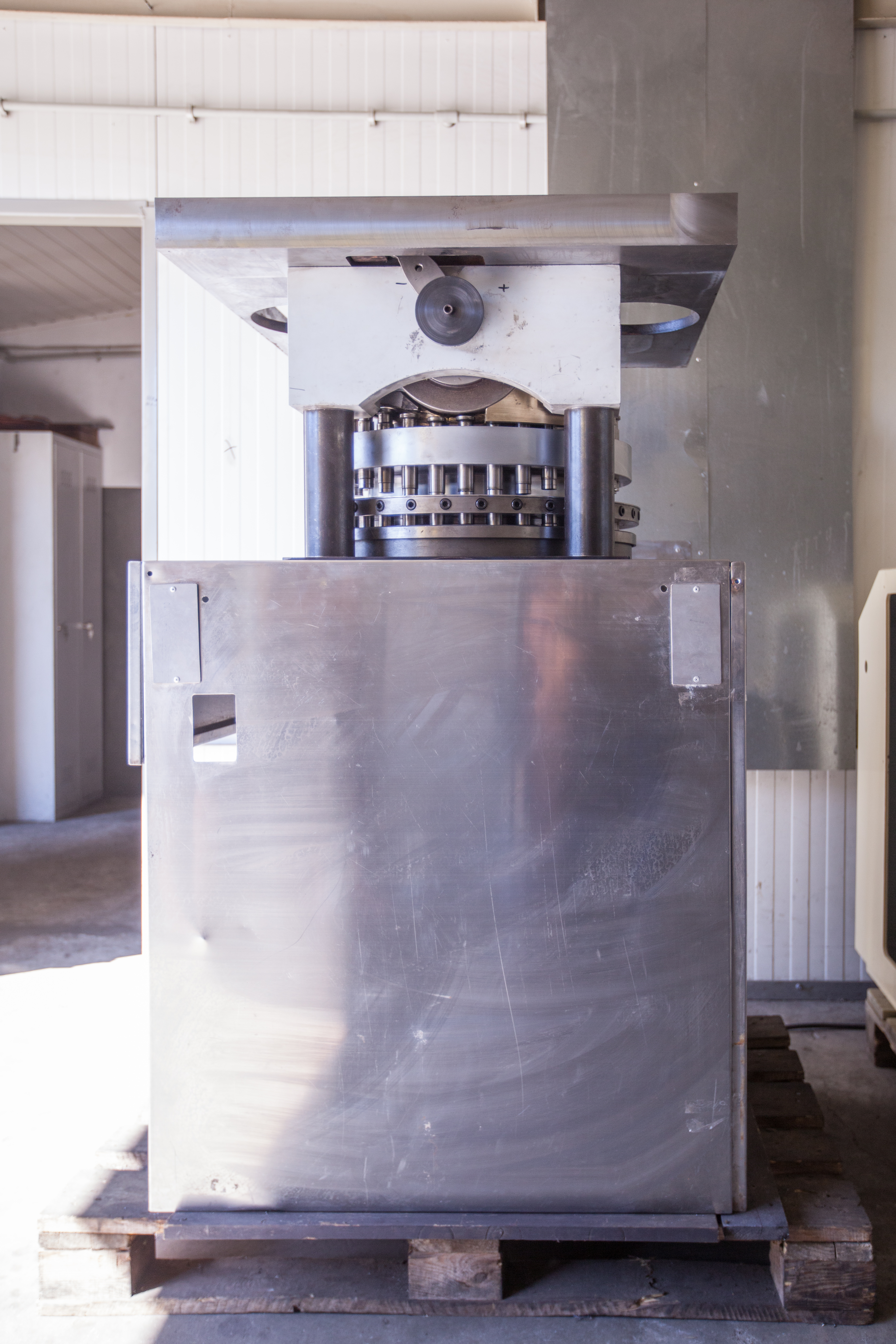 Sfera robocza nowej tabletkarki jest wykonana ze stali kwasoodpornej (elementy stykające się bezpośrednio z produktem) i całkowicie osłonięta ruchomymi i przezroczystymi osłonami, które szczelnie zamykają strefę prasowania. Dzięki osłonom ilość wydzielających się zanieczyszczeń do atmosfery jest ograniczona. Nowa tabletkarka wyeliminowała wady dotychczasowych rozwiązań i jest produkowana w ekologicznym, energooszczędnym i zautomatyzowanym procesie produkcyjnym.